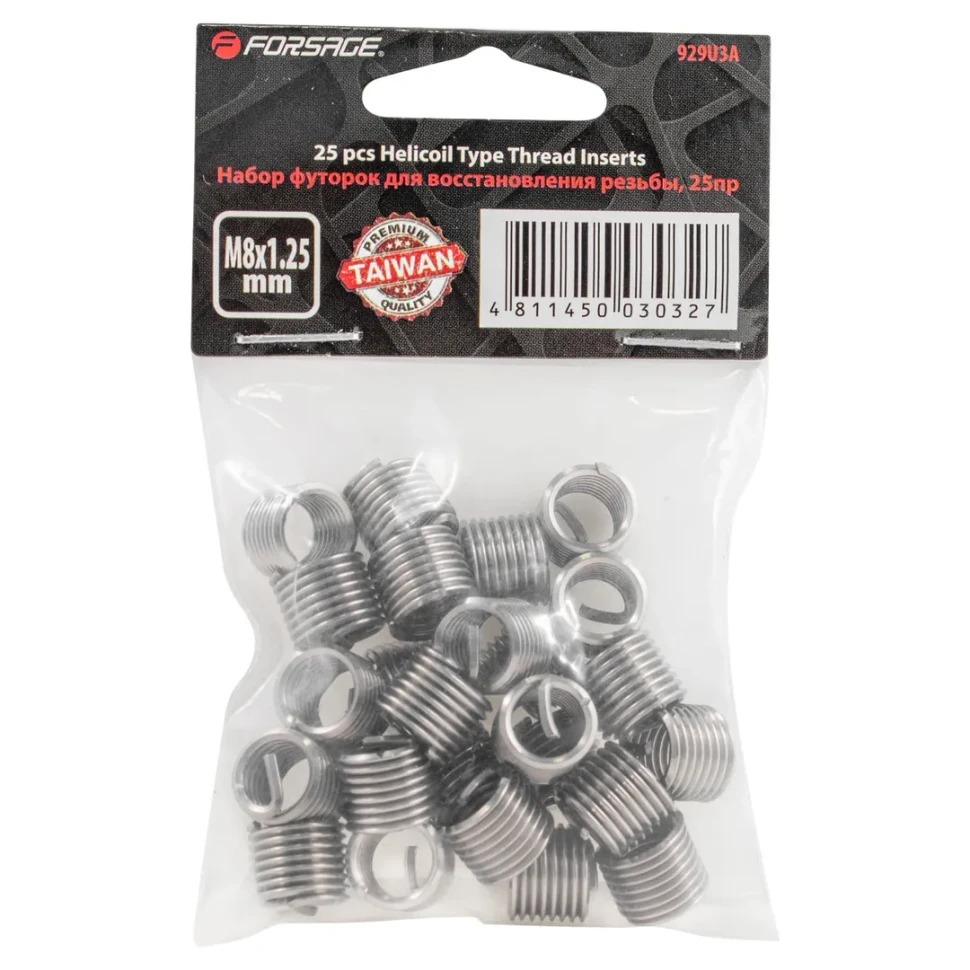 Код товара: 15183, Состав: Набор футорок для восстановления резьбы М8х1.25, 25пр. Forsage F-929U3A(F-04J1066)