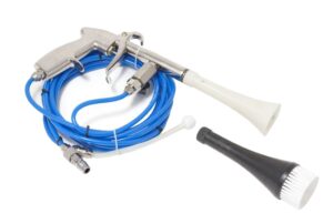 Пістолет пневматичний для очищення салону автомобіля Rockforce RF-203824. Дозволяє швидко та глибоко очистити салон будь-якого автомобіля. Він оснащений двома вирвами для видалення всіх забруднень завдяки ефекту торнадо. Він оснащений баком на 1,0 л для більшої дальності. Він працює при тиску повітря від 4 до 6 бар, а його витрата повітря становить 120 л/хв. Чистячий пістолет Rockforce RF-203824 ідеально підходить для очищення панелей приладів, місць зберігання, вентиляційних решіток, автомобільних килимів, сидінь і т.д.Особливості- Тип: пневмопістолет- Зі змінною насадкою піногенератором- Матеріал: метал та пластик- Об’єм контейнера: 1000 мл- Робочий тиск: 6 бар- Витрата повітря: 120 л/хв